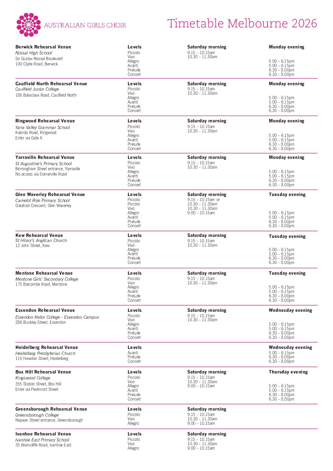 2026 Timetable