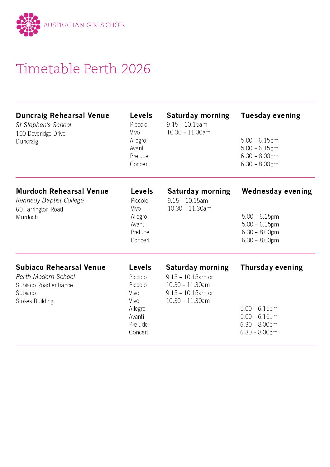 2026 Timetable